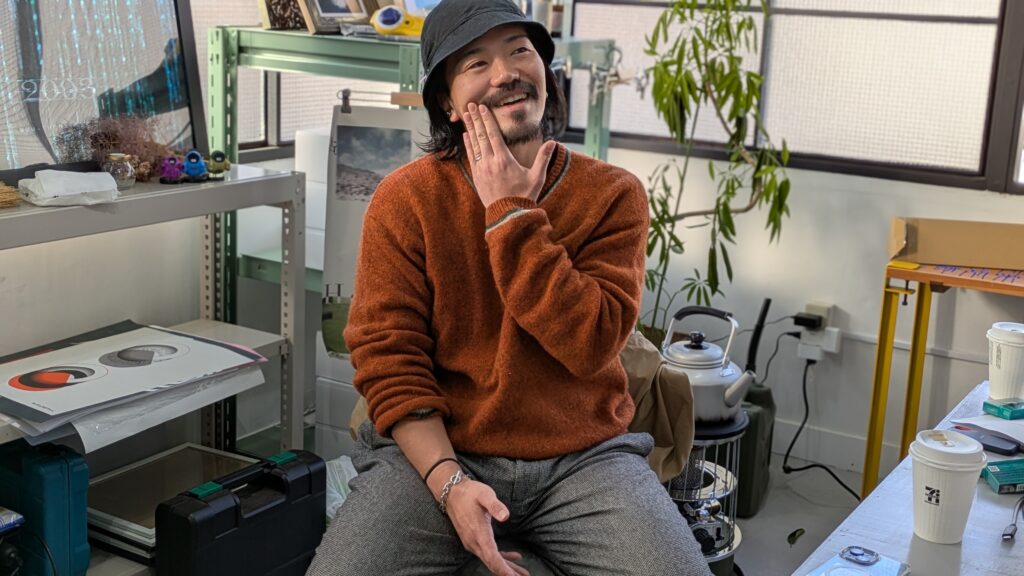 長野は、ちょっと外に出れば自然があって、日常の中で山が見える。それがすごく最高ですね。おれは、ただ座っていてもデザインやグラフィックのアイディアはあんまり浮かんでこなくて。どちらかというと、息抜きで気がゆるんだ瞬間に出てくるパターンが多いんです。それに、誰かが作ったものよりも、自然物からインスピレーションをもらう方が楽しくて。