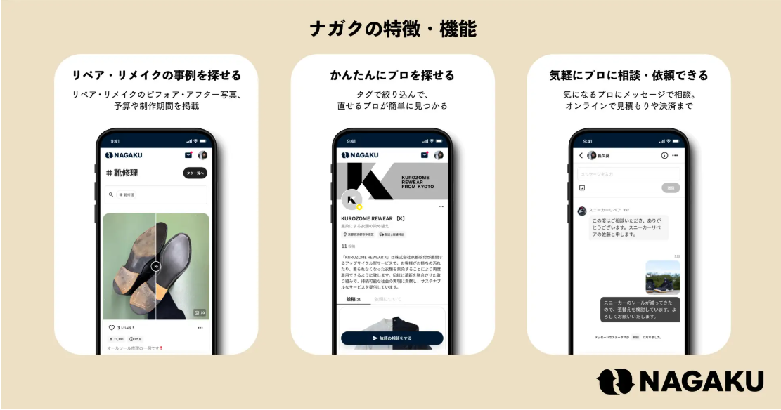 ナガク株式会社は、長野市で2024年の8月に創業した、モノが長く使われる社会の実現を目指すスタートアップ企業です。創業後、メンバー集めや開発を進め、2025年2月20日にリペア・リメイクの事例やプロを探し、オンラインで相談・依頼ができるプラットフォームサービスの「ナガク」をリリースしました。